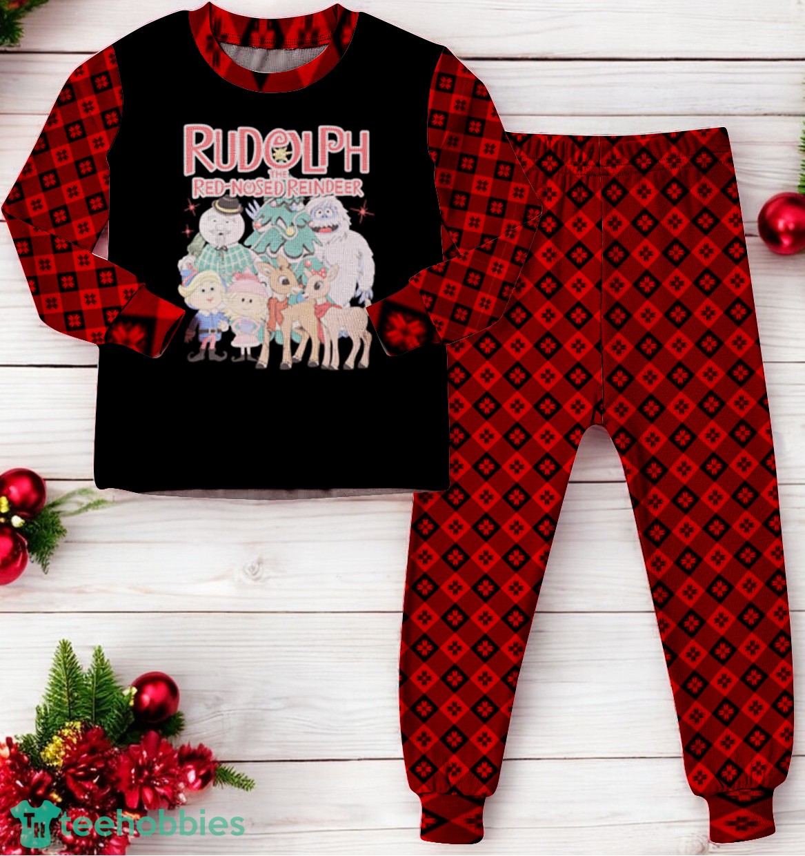 - All-Over Print Design: Featuring a vibrant and festive all-over print, our Rudolph the Red-Nosed Reindeer pajama design captures the magic of Christmas.