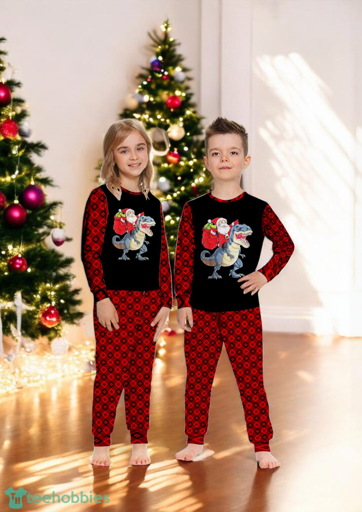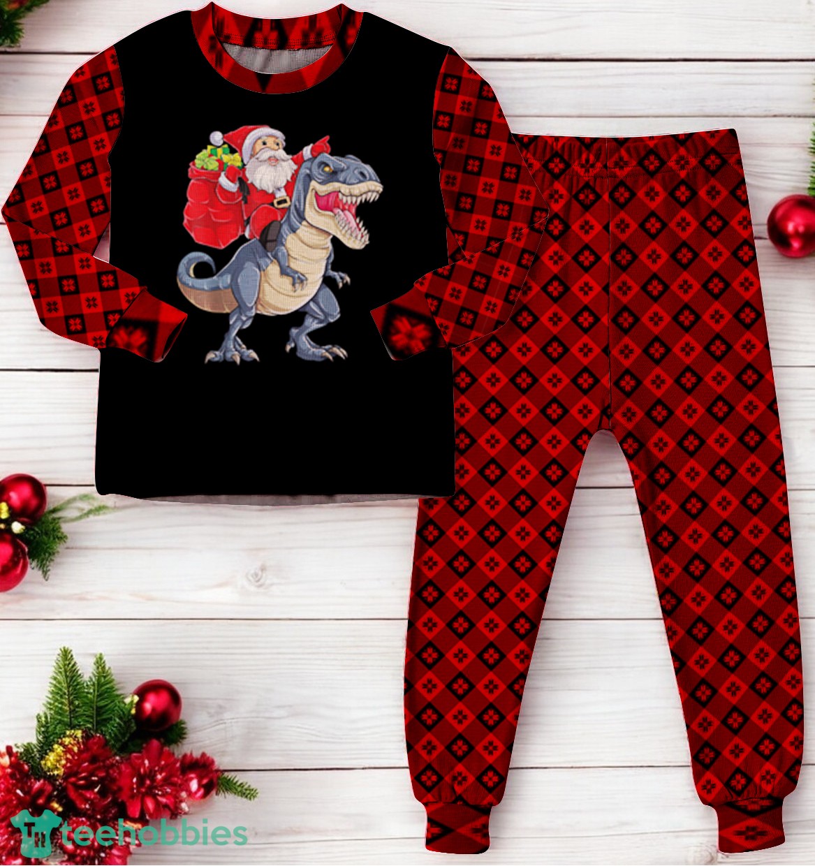 Be the first to review “Santa Riding Dinosaur T-rex Christmas Family Matching Pajama Set”