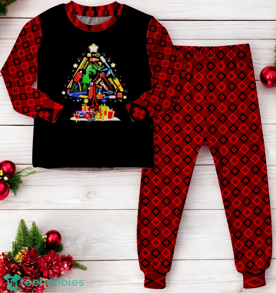 Scissor Hairstylist Christmas Tree Scissor Hairstylist Family Matching Pajama Set
