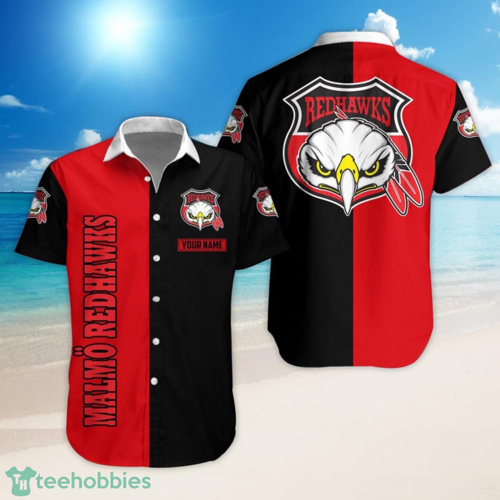 This design is available in a combo Hawaiian shirt & shorts. You can also get it separate. The default option is only one shirt or one pair of shorts. You have chosen a combo to get them both. This combo SHL Hockey Malmo Redhawks Set Hawaiian Shirt And Shorts is perfect to go to the beach. Get yours now or make a great gift.