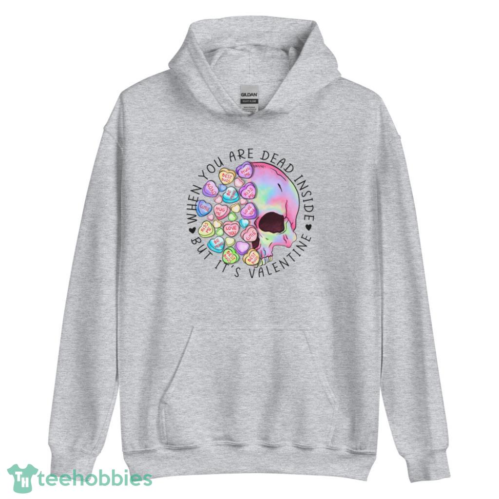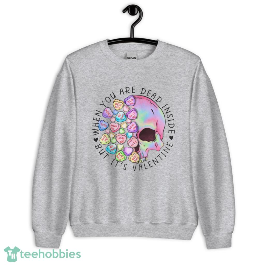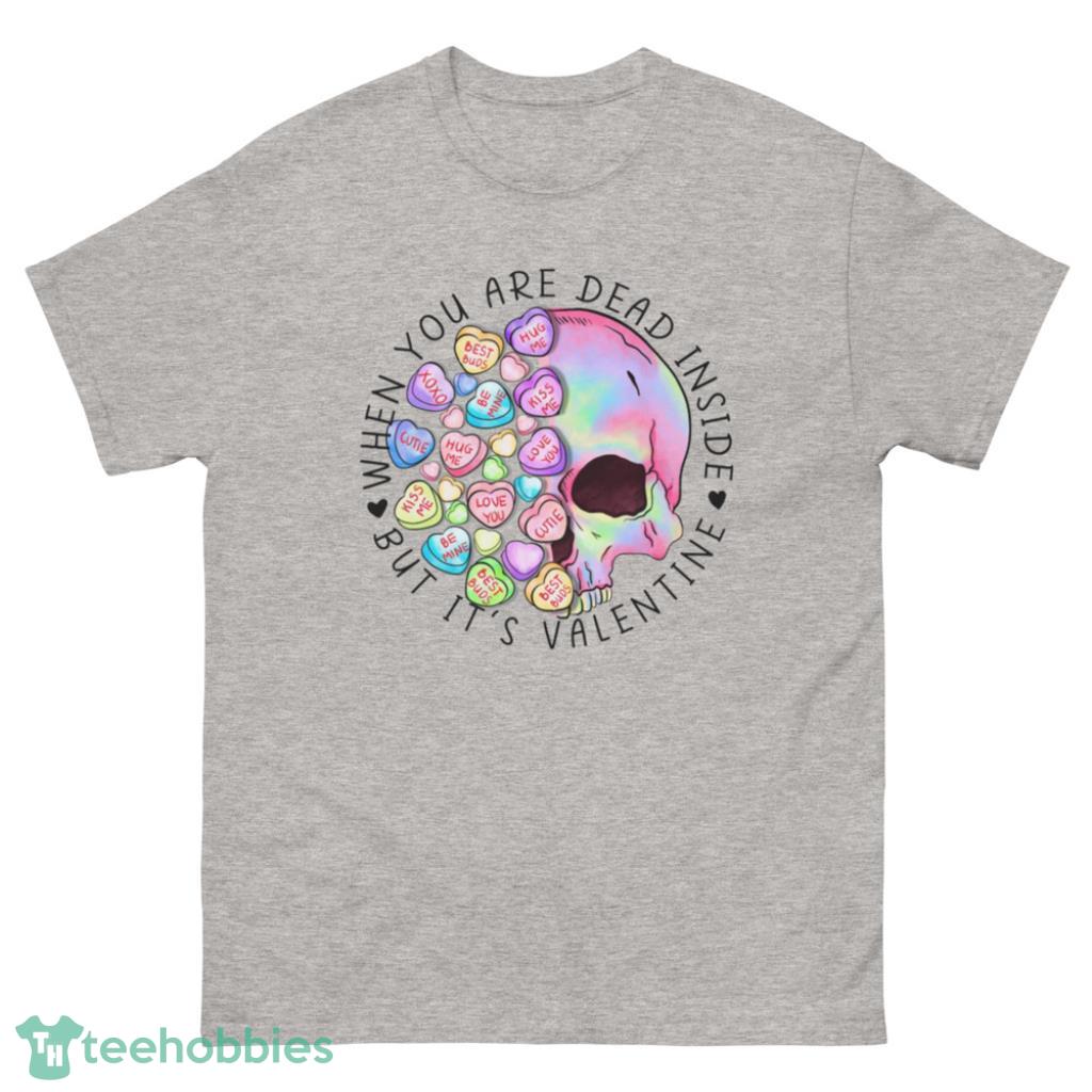 The shirt features a large, printed skeleton graphic on the front, with the words “Gothic Goth Valentines Day” printed below it. The back of the shirt is blank. The shirt is black in color and is available in sizes small through extra-large.