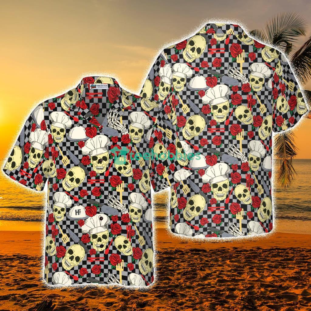Some of the Skulls In Chef Hats And Red Roses Patterned Hawaiian Shirt photos
