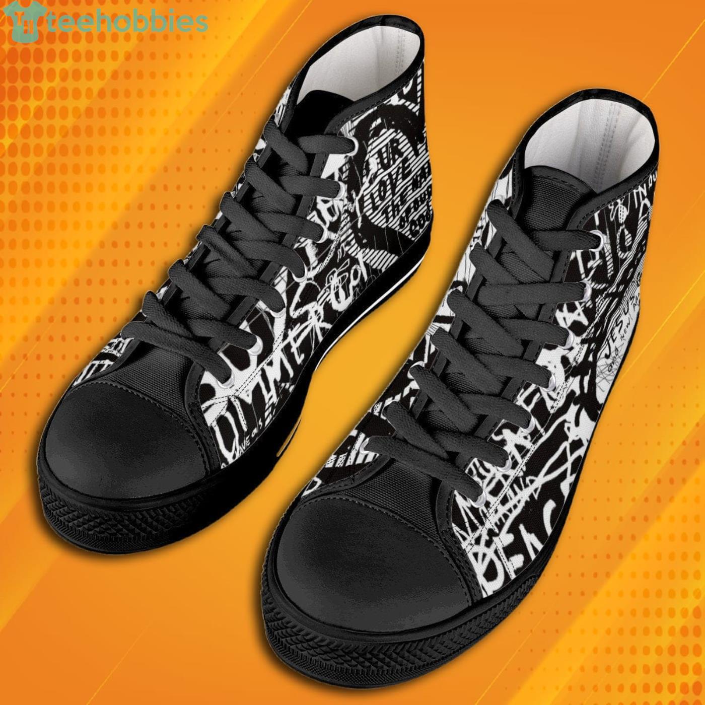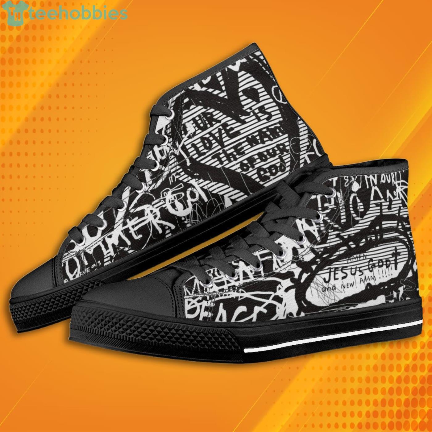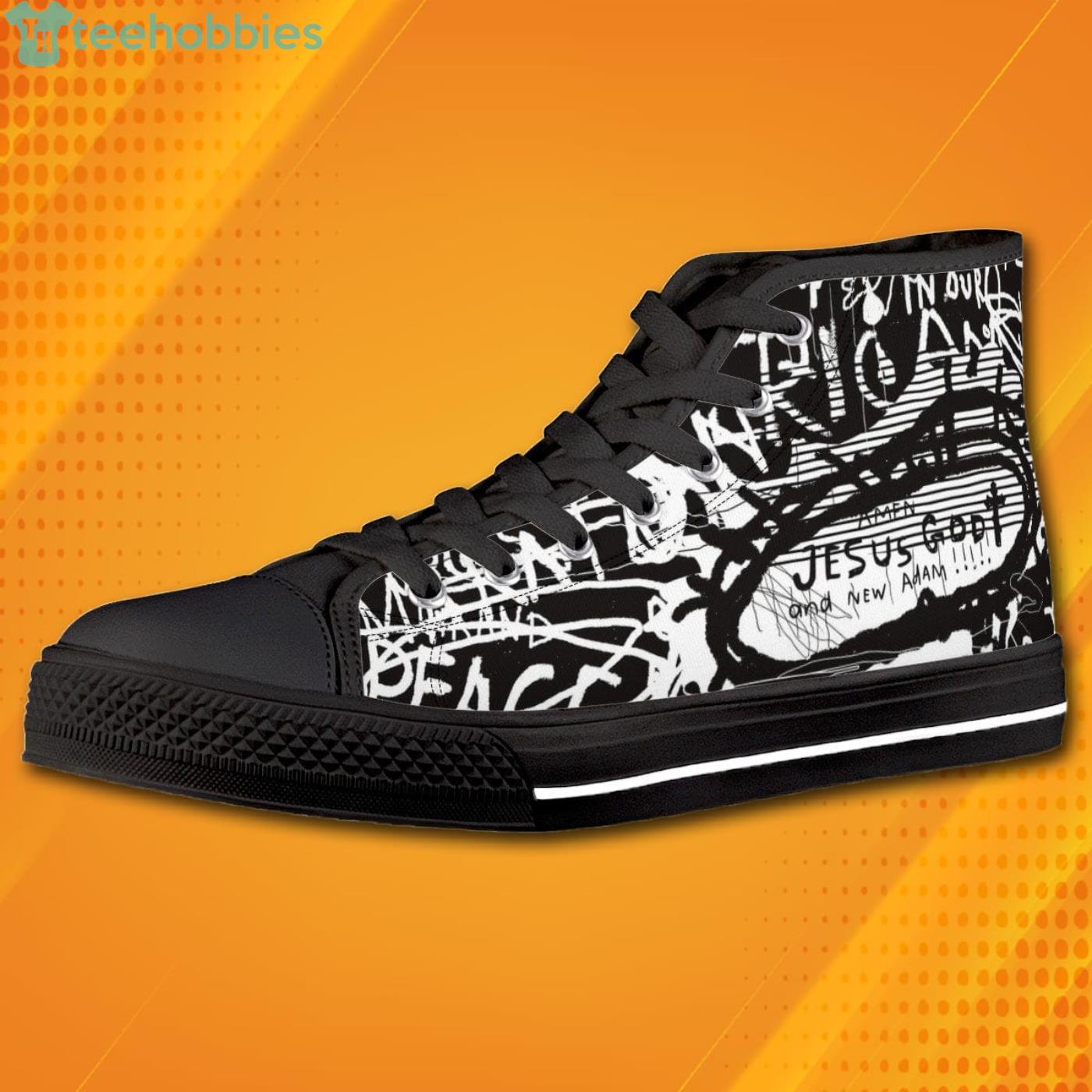 Some of the Splatter Jesus God And New Adam Black High Top Canvas Shoes photos
