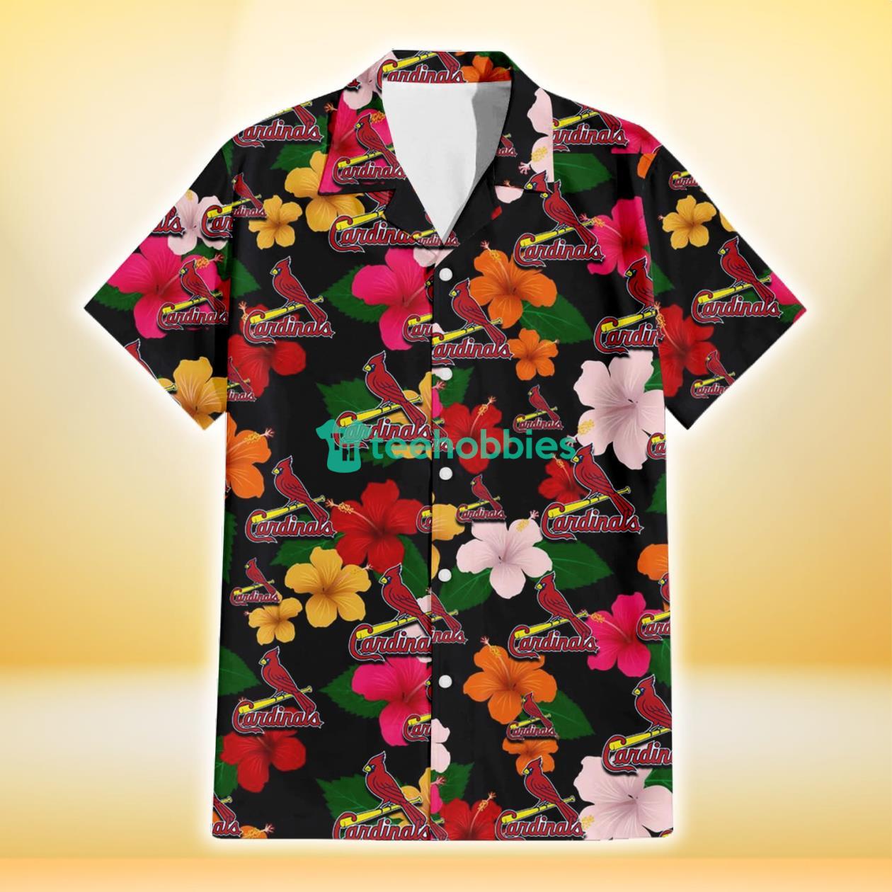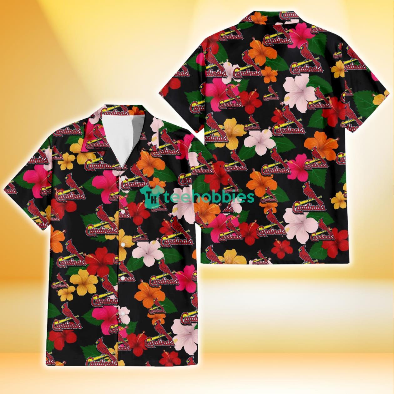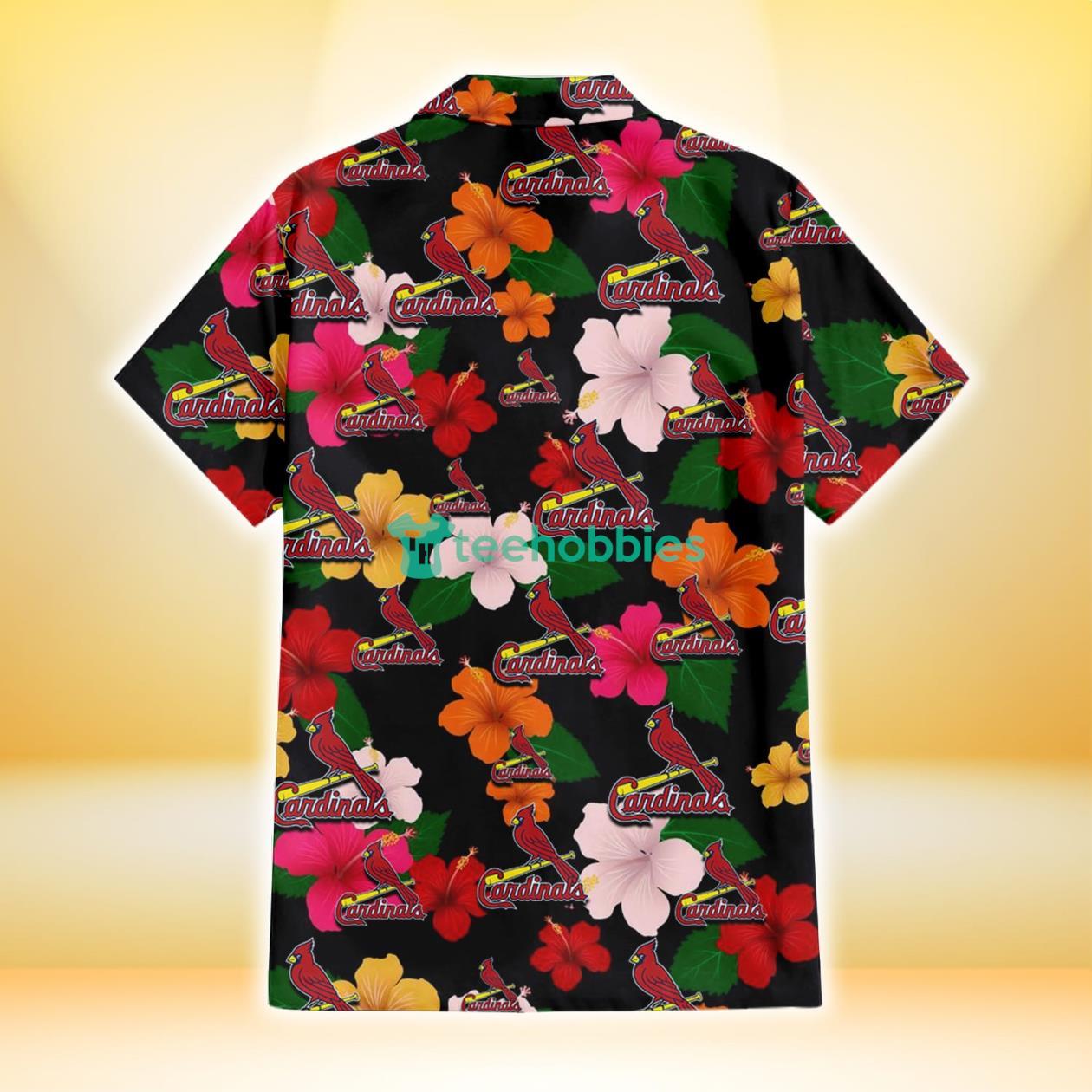 Some of the St. Louis Cardinals Pink Orange Yellow White Hibiscus Black Background 3D Hawaiian Shirt Gift For Fans photos