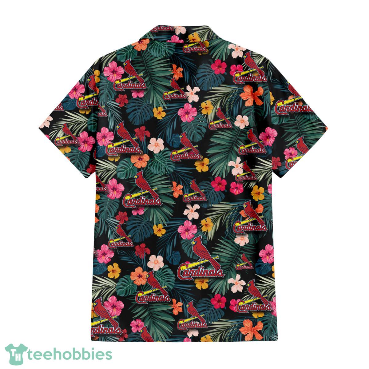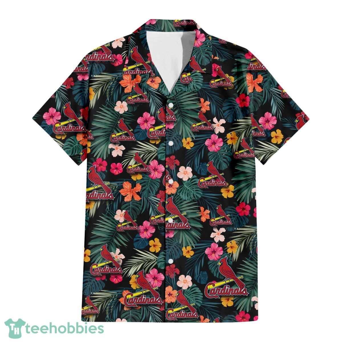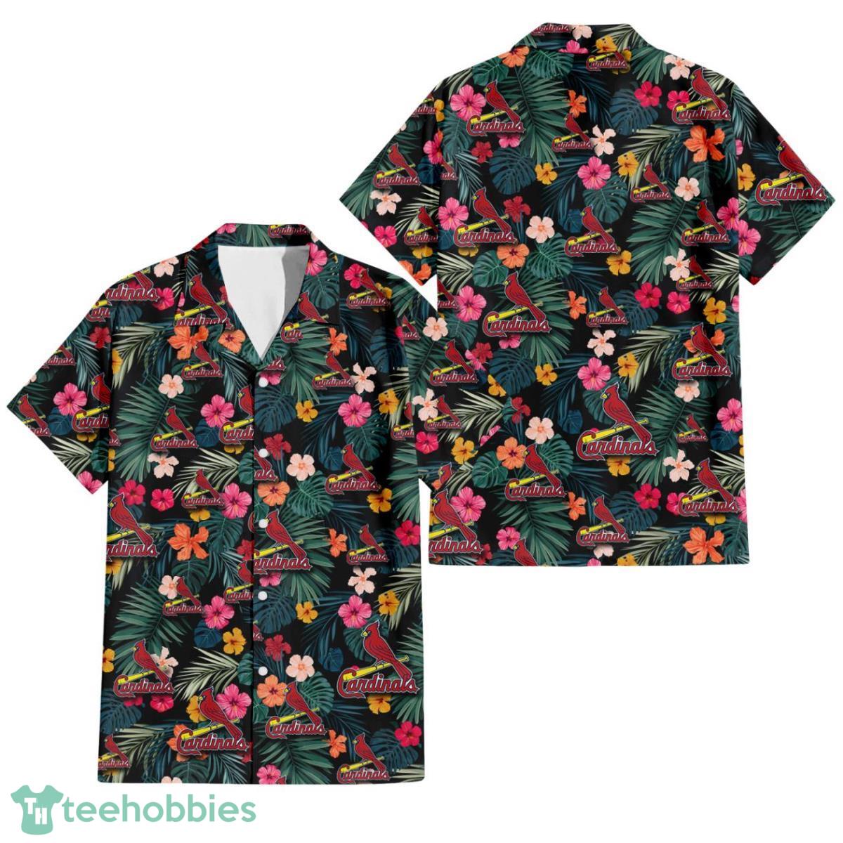 Some of the St. Louis Cardinals Pink Yellow Orange Hibiscus Big Tropical Leaf Black Background 3D Hawaiian Shirt Gift For Fans photos