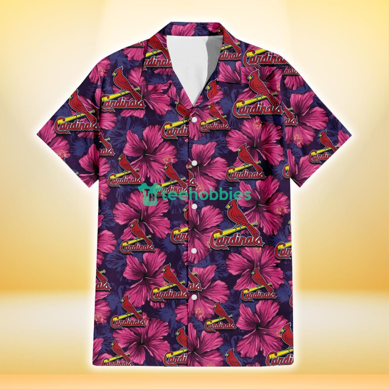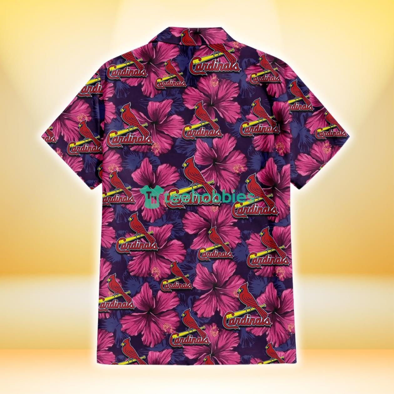 Some of the St. Louis Cardinals Plum Vilolet Hibiscus Dark Navy Leaf Black 3D Hawaiian Shirt Gift For Fans photos