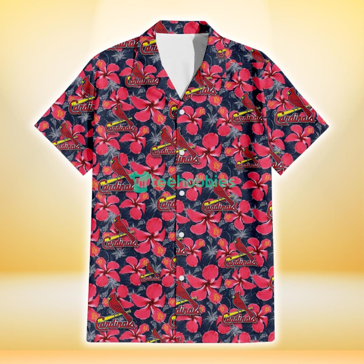 Some of the St. Louis Cardinals Red Hibiscus Dark Gray Background 3D Hawaiian Shirt Gift For Fans photos