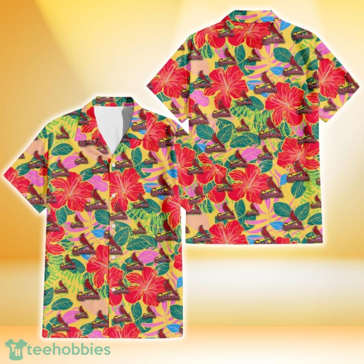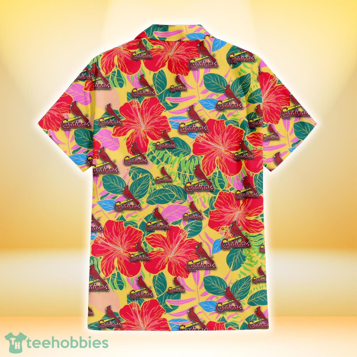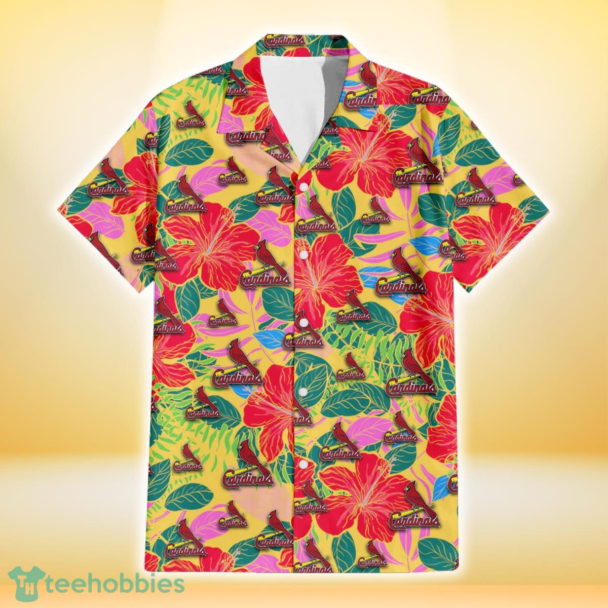 Some of the St. Louis Cardinals Red Hibiscus Green Blue Leaf Yellow Background 3D Hawaiian Shirt Gift For Fans photos