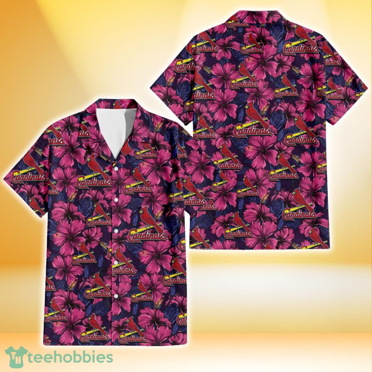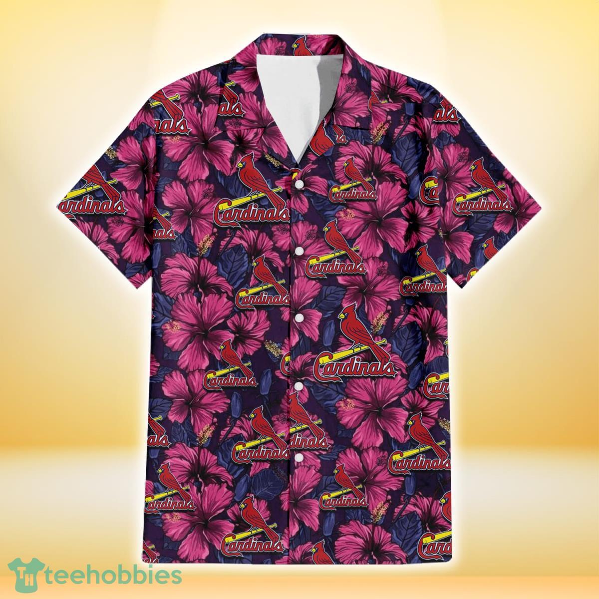Some of the St. Louis Cardinals Violet Red Blue Leaf Black Background 3D Hawaiian Shirt Gift For Fans photos