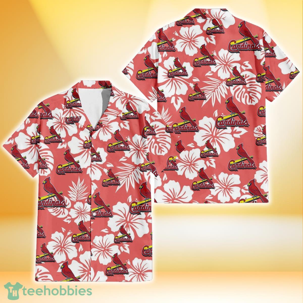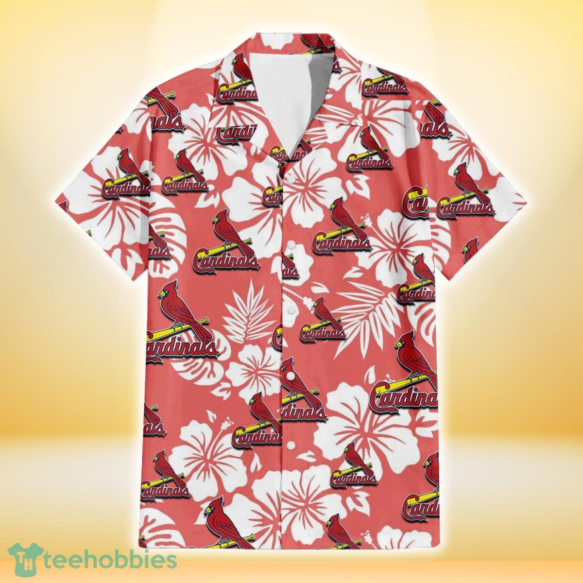Some of the St. Louis Cardinals White Hibiscus Salmon Background 3D Hawaiian Shirt Gift For Fans photos