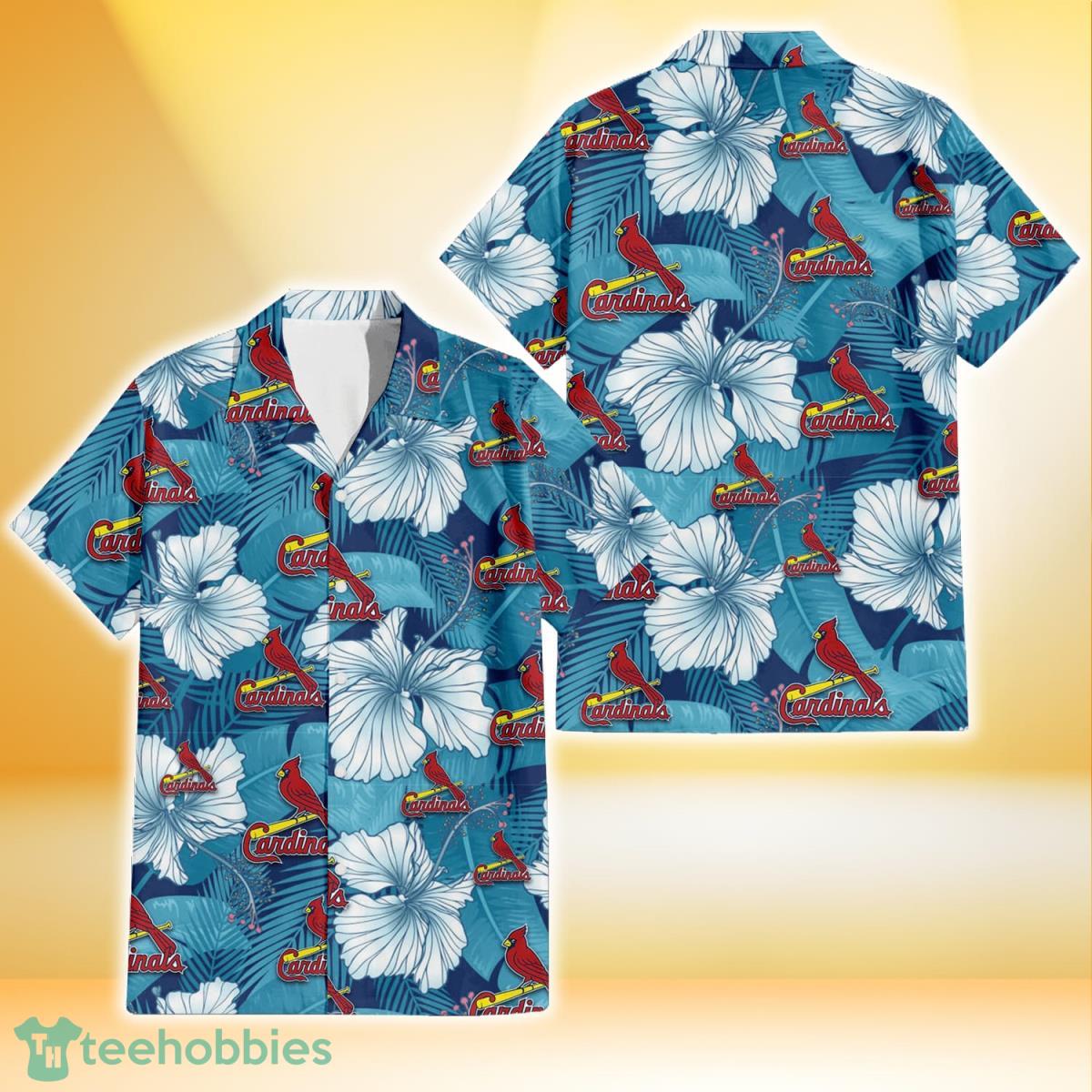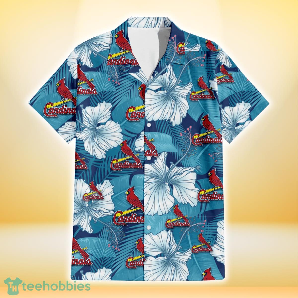 Some of the St. Louis Cardinals White Hibiscus Turquoise Banana Leaf Navy Background 3D Hawaiian Shirt Gift For Fans photos