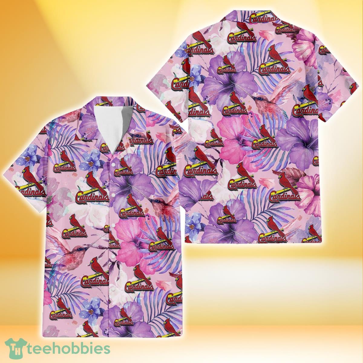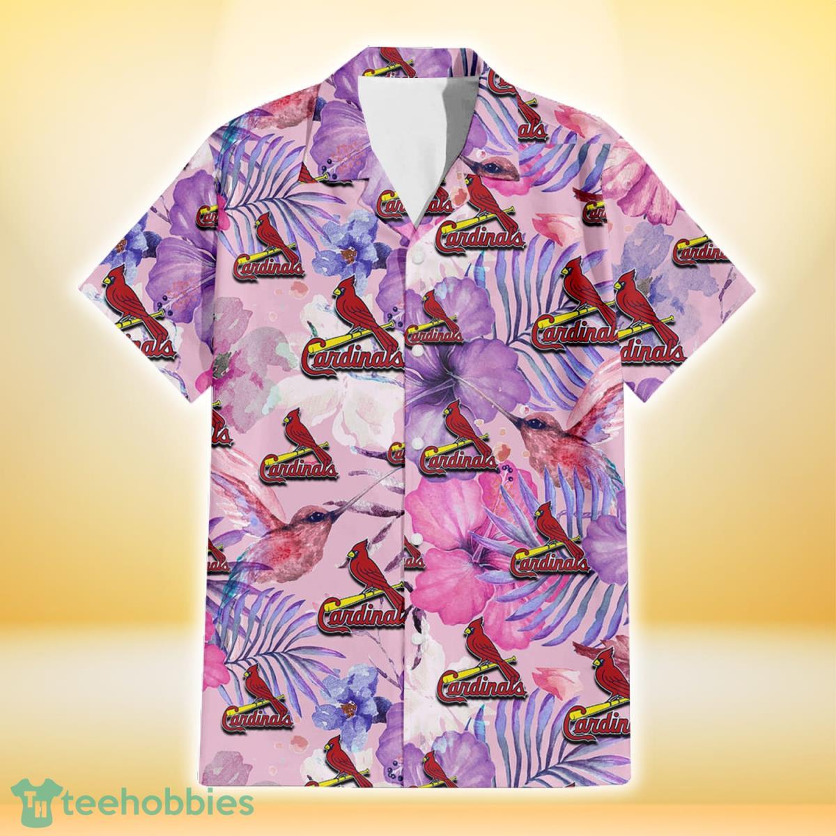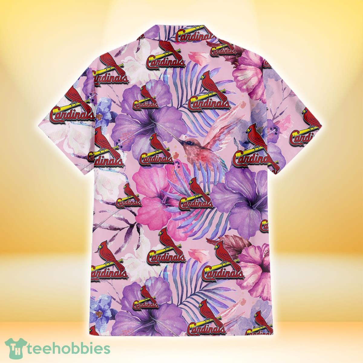 Some of the St. Louis Cardinals White Purple Hibiscus Pink Hummingbird Pink Background 3D Hawaiian Shirt Gift For Fans photos