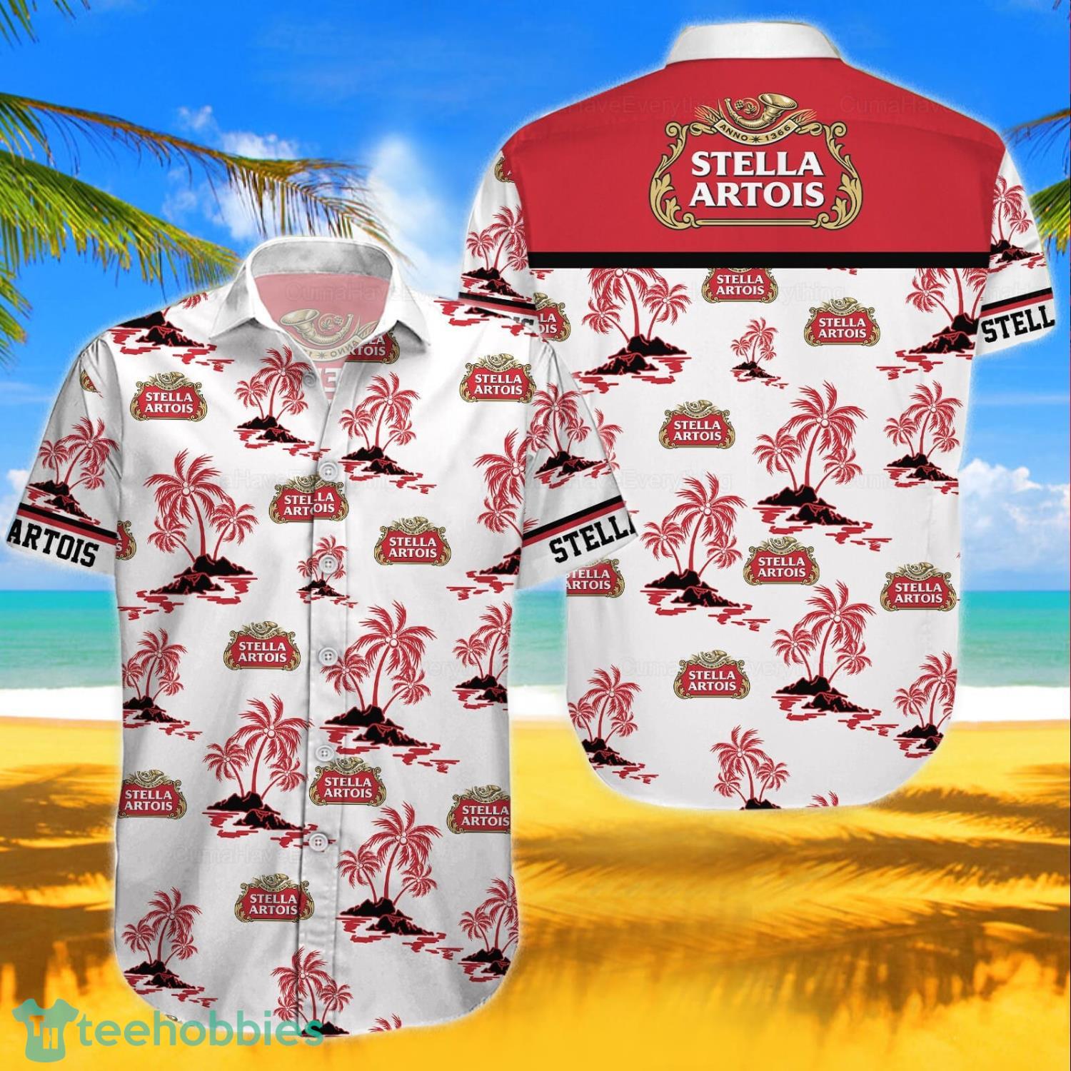 Stella Artois Hawaiian Shirts And Shorts Cocomut Pattern Button Down Shirts Details: