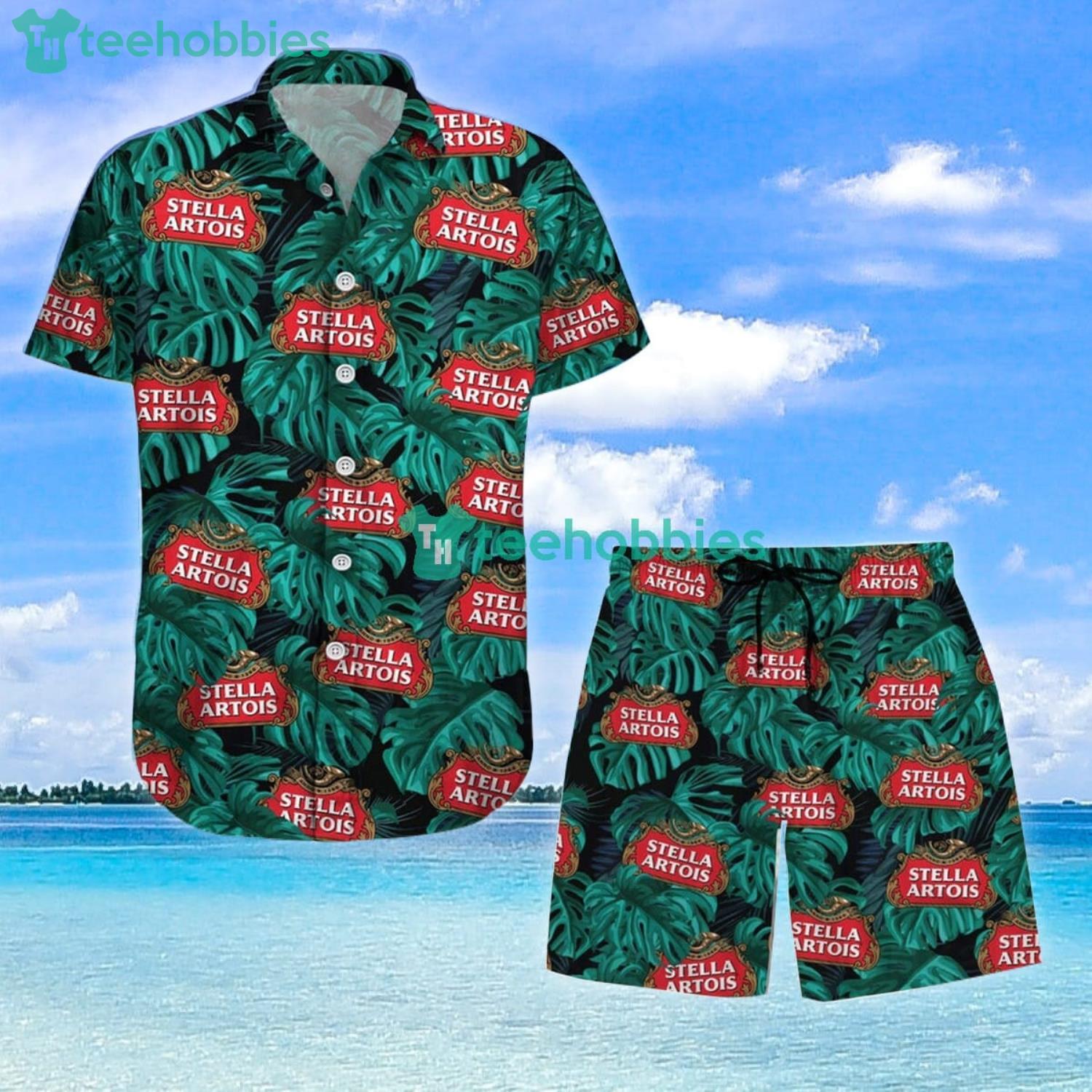 Some of the Stella Artois Lover Stella Artois Leaf Pattern Combo Hawaiian Shirt And Shorts photos