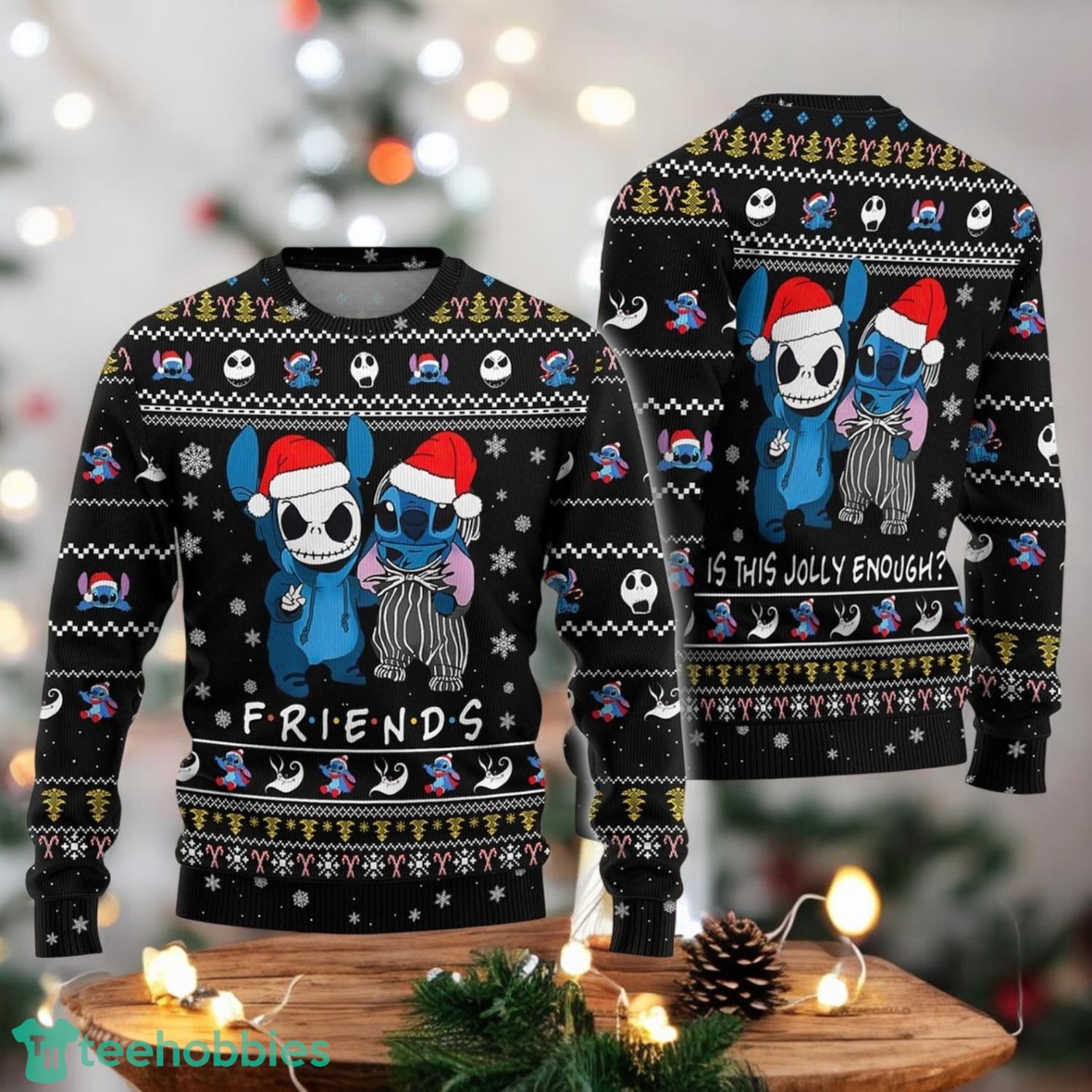 Embrace Holiday Fun with the Stitch And Jack Skellington Friends Ugly Christmas Sweater