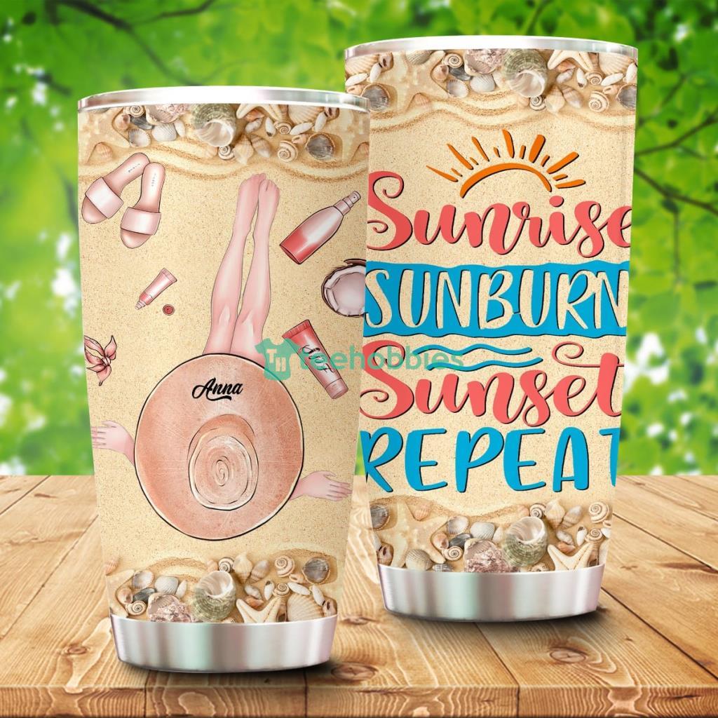 Sunrise Sunburn Sunset Repeat, Personalized Beach Girl Tumbler