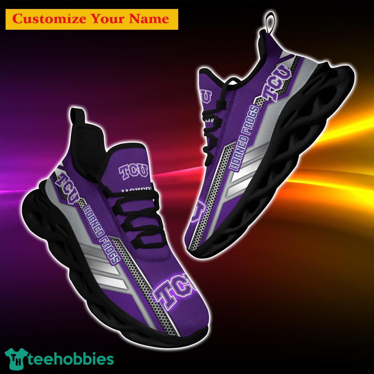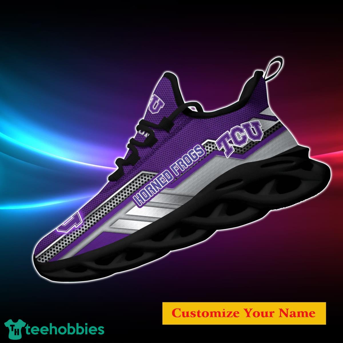 The TCU Horned Frogs NCAA1 Custom Name Max Soul Shoes are the perfect gift for passionate fans like you. Designed with utmost attention to detail, these shoes exude a sense of team spirit and individual style. Crafted to provide unparalleled comfort, they feature a custom name option, allowing you to personalize them and showcase your unwavering support for the TCU Horned Frogs. Whether you’re cheering from the stands or hitting the streets, these shoes will effortlessly elevate your game-day ensemble. Ideal for both men and women, they are a must-have addition to any fan’s wardrobe. Order yours today and step into the world of ultimate fandom!