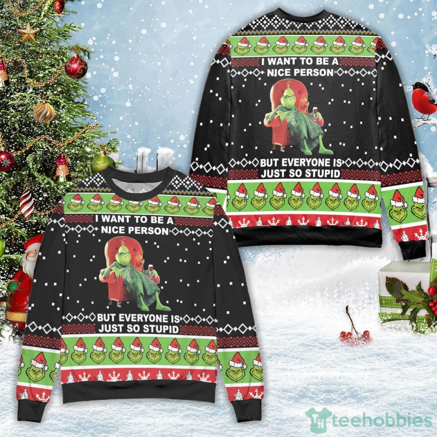 The Grinch I Want To Be A Nice Person But Everyone Is Just So Stupid Ugly Christmas Sweater Christmas Gift For Men And Women