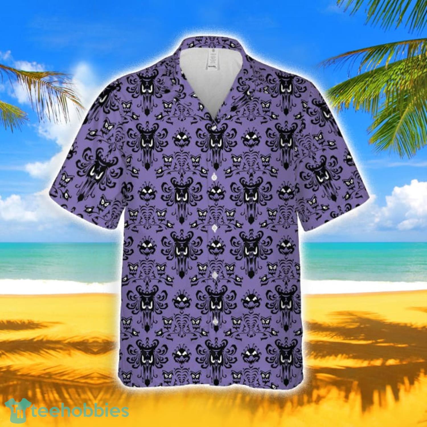 The Haunted Mansion Wallpaper Disney Cartoon Graphics Beach Lover Short Sleeve Hawaiian Shirt For Men And Women Details: