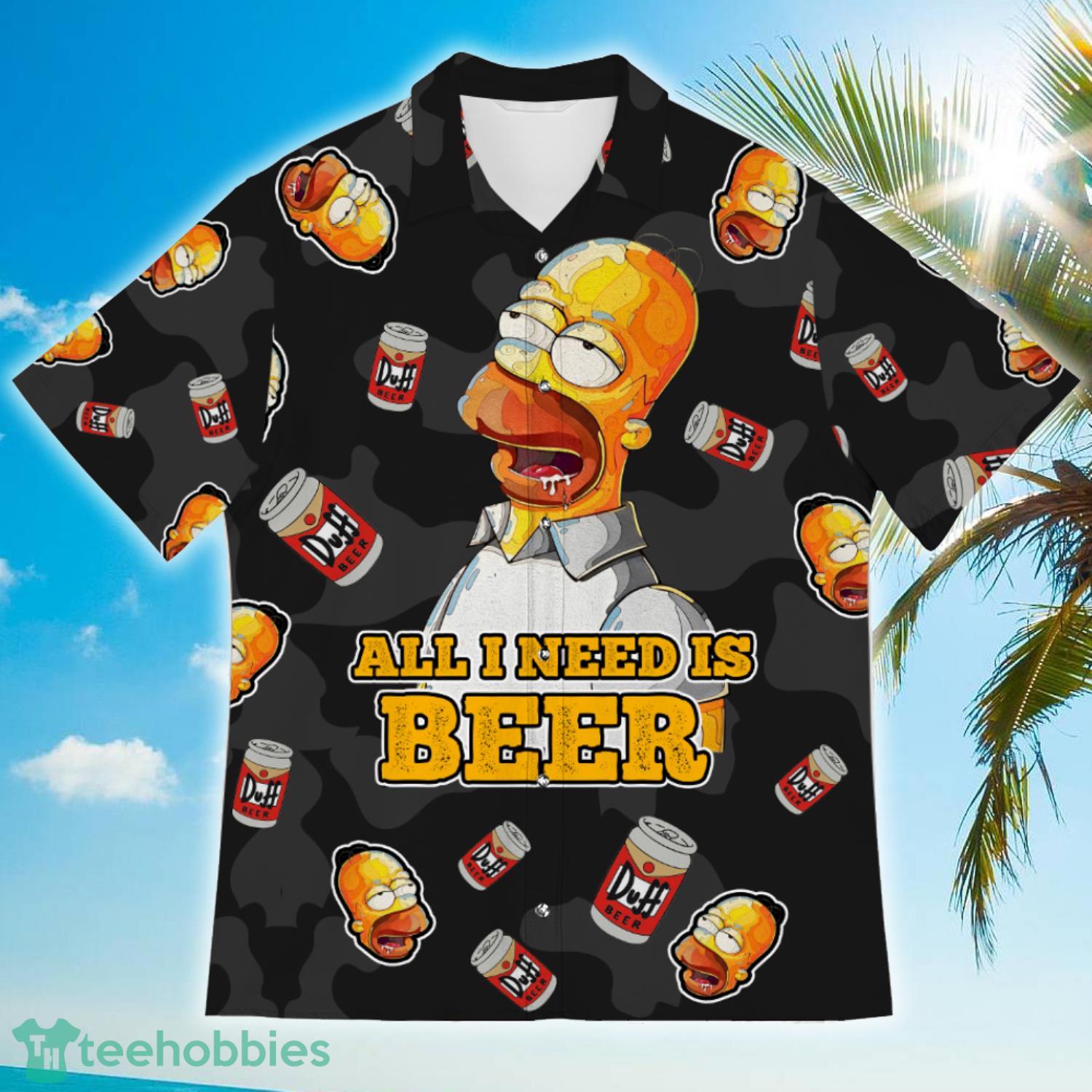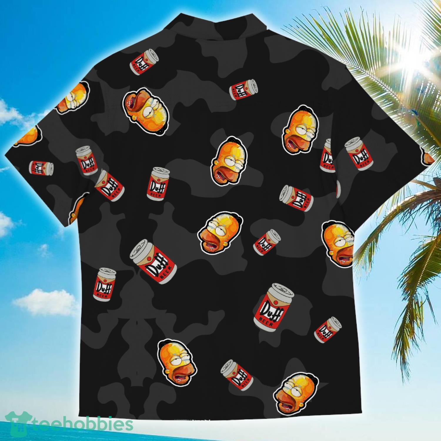 The shirt features a classic Hawaiian print, with vibrant images of The Simpsons family set against a black background. The design is incredibly detailed, showcasing the unique personalities of each member of the family, from Homer’s love of donuts to Lisa’s passion for the saxophone.