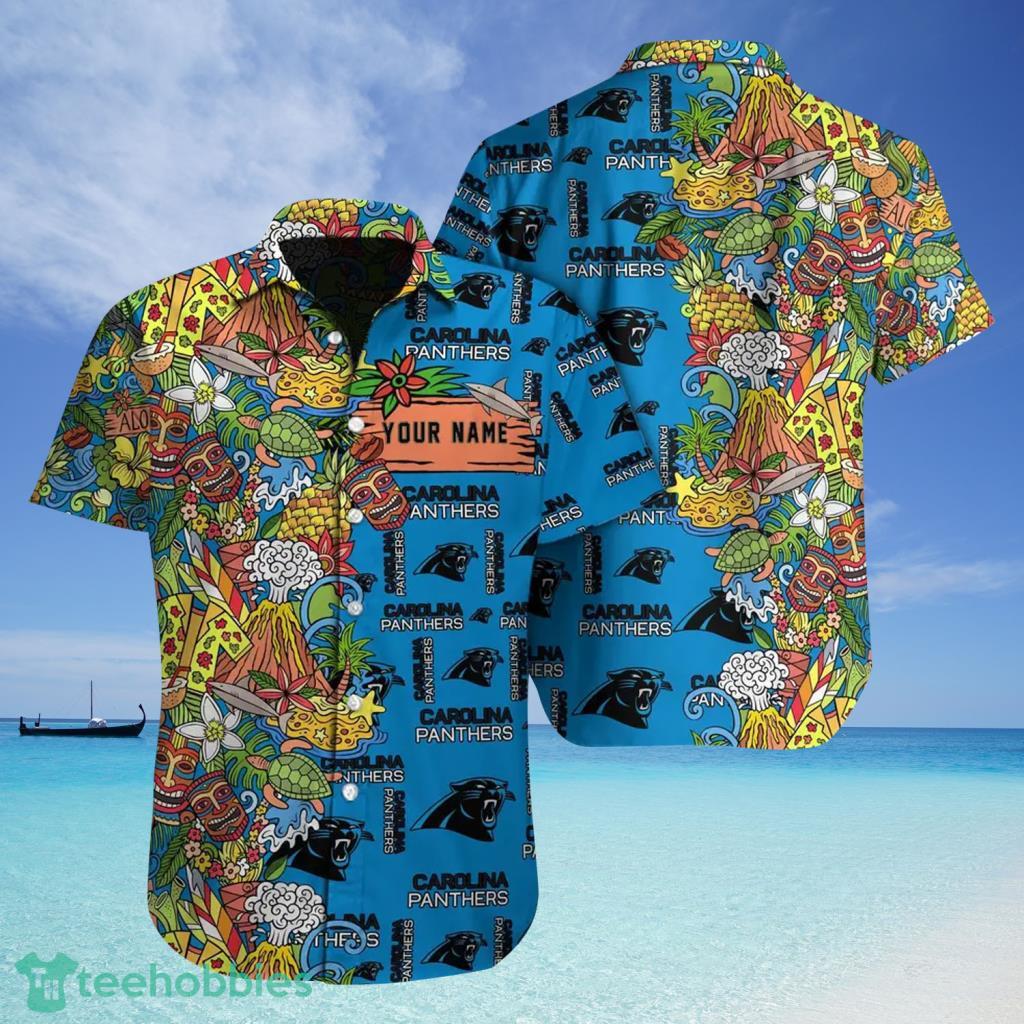 Tiki Pattern NFL Carolina Panthers Aloha Custom Name Hawaiian Shirt Details: