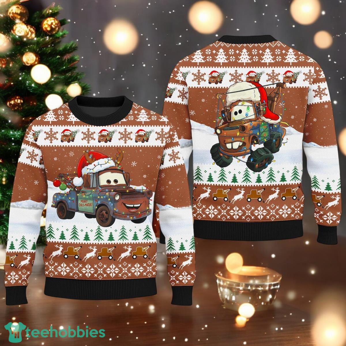 Tow Mater Christmas Ugly Sweater Lightning McQueen 95 Ugly Chritsmas Sweater