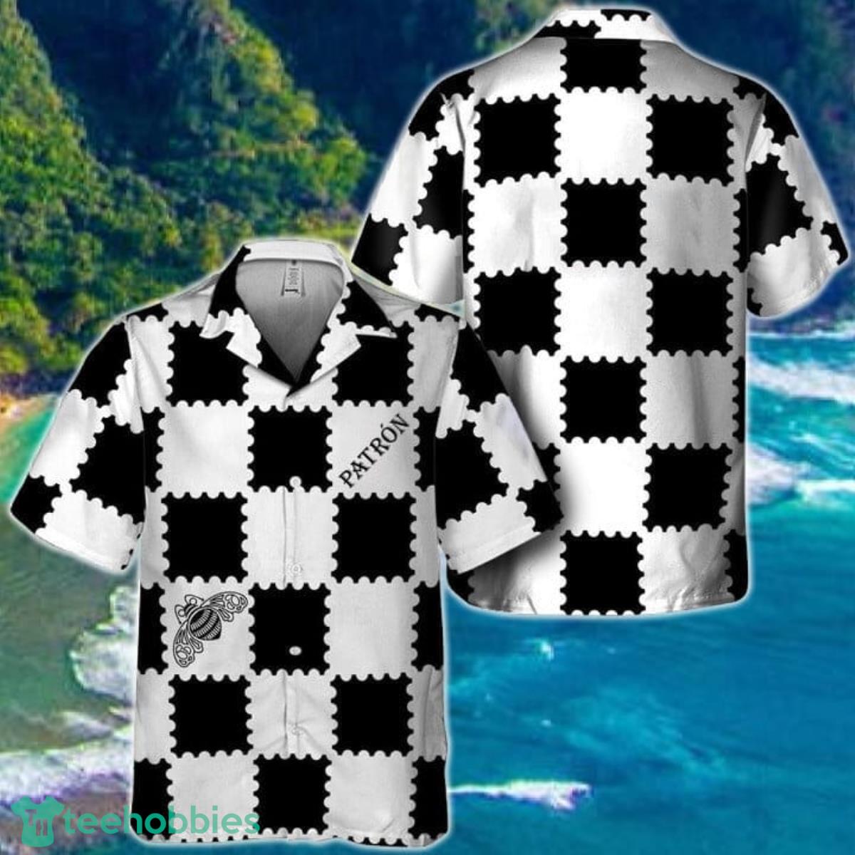 Trendy Gingham Tequila Patron Hawaiian Shirt Details: