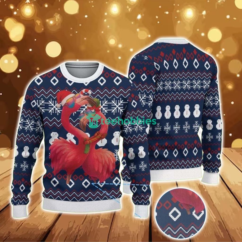 Ugly Christmas Sweater With Snowflake And Snowman Pattern Featuring Pink Flamingo