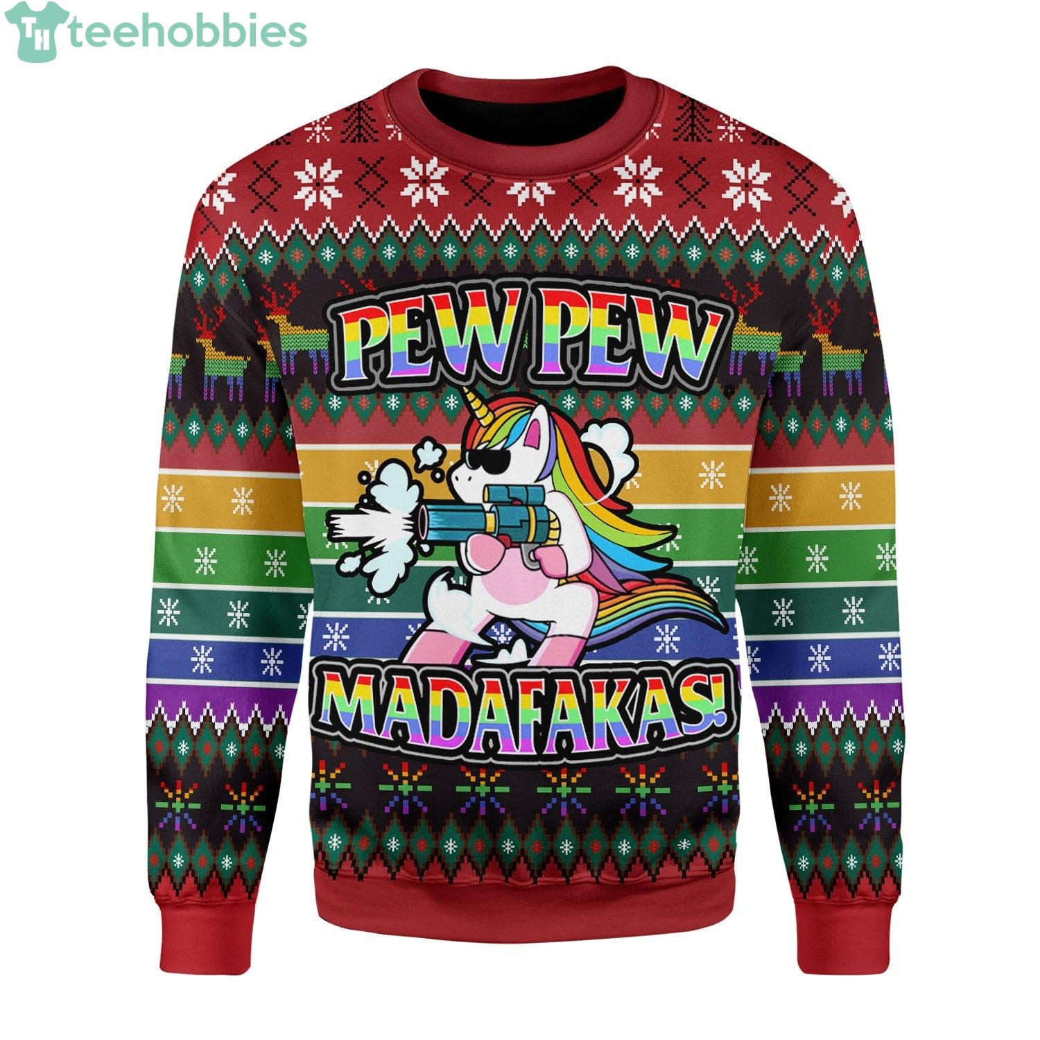 Some of the Unicorn LGBT Pew Pew Ugly Christmas Sweater photos