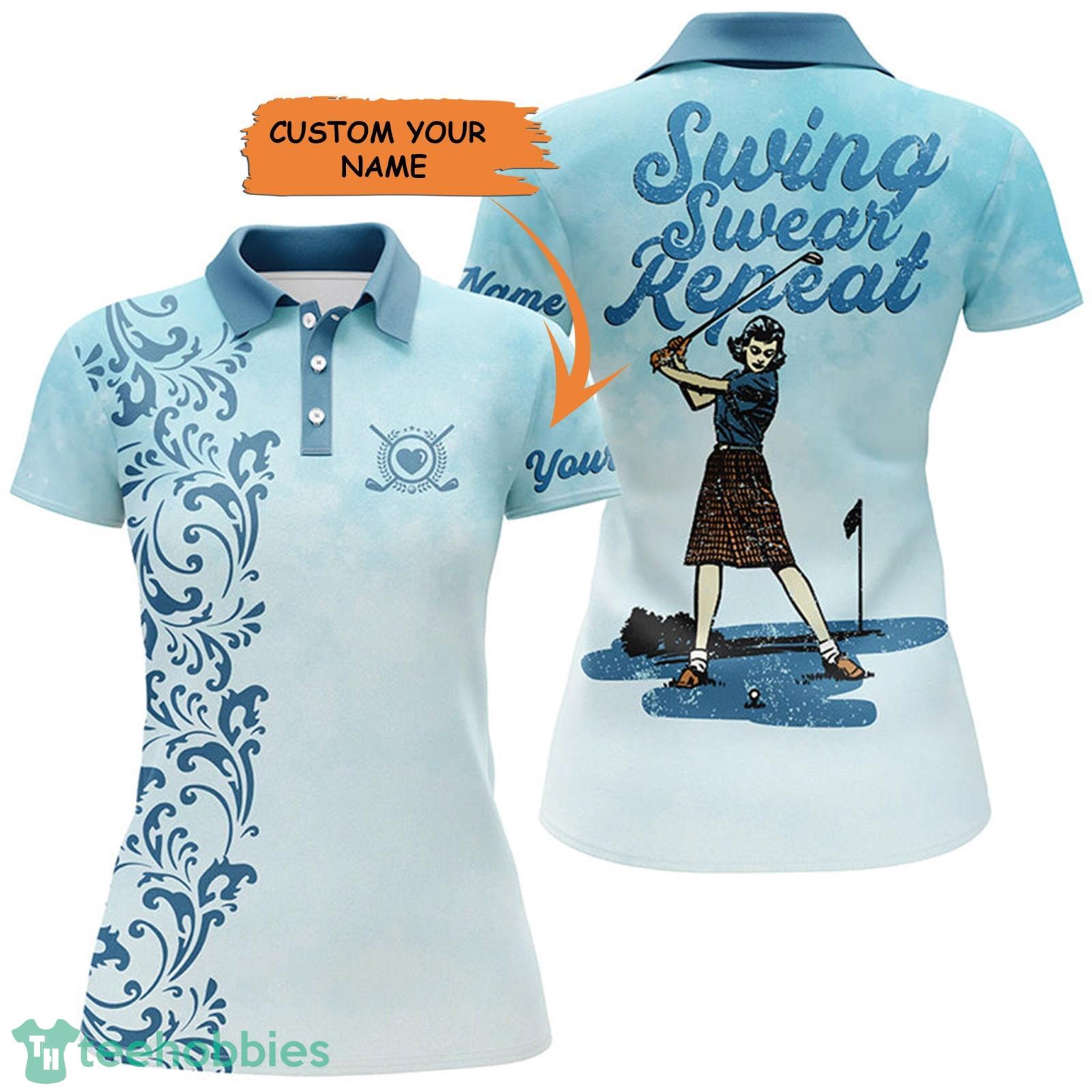 Vintage Womens Golf Custom Name Swing Swear Repeat Vintage Blue Golf3D Polo Shirt – Vintage Womens Golf Custom Name Swing Swear Repeat Vintage Blue Golf 3D Polo Shirt Size S-5XL