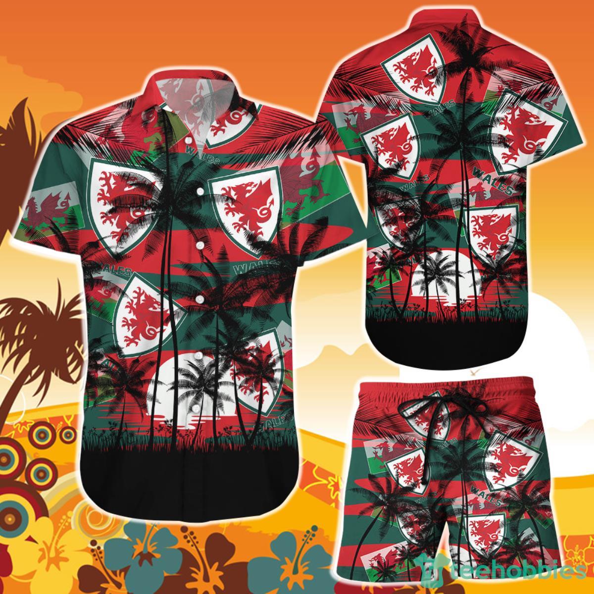Some of the Wales Coconut Pattern Hawaiian Soccer Team World Cup 2022 Qatar Champions Football Shirt and Short photos