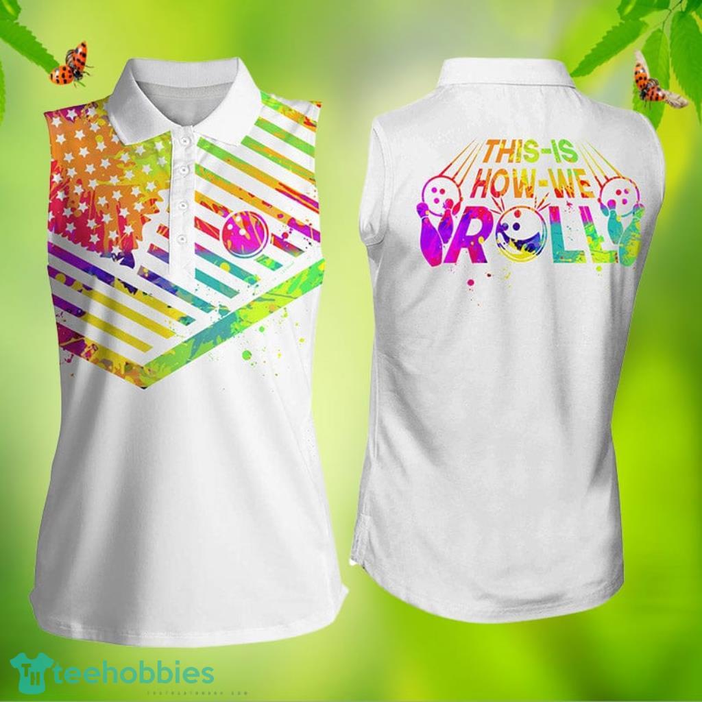 Whether you’re teeing off on the golf course, attending a casual gathering, or simply running errands, this Watercolor American Flag This Is How We Roll Bowlings For Women Women’s Sleeveless Golf Polo Shirt is the perfect choice.