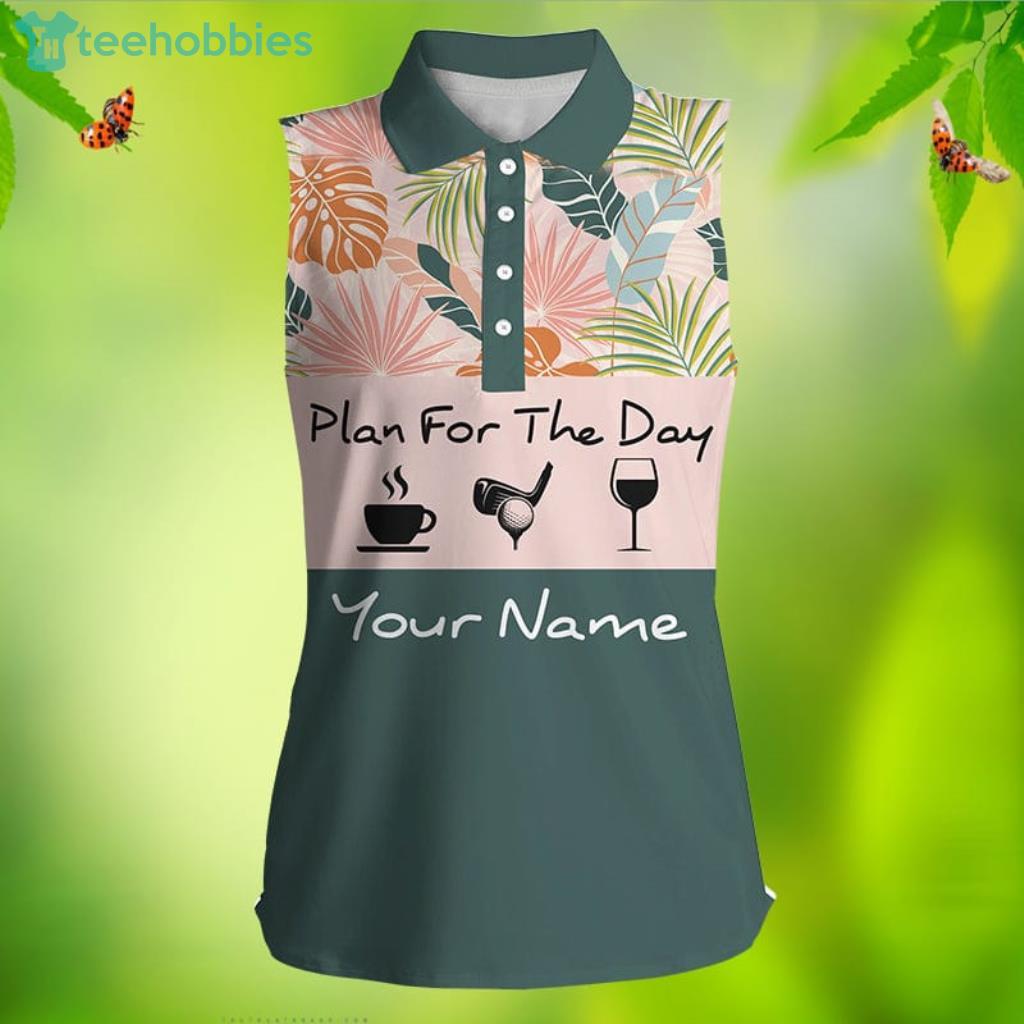Some of the Women Sleeveless Polo Shirt Plan For The Day Coffee Golf Wine Custom Name Tropical Leaves Floral Golf Shirt photos